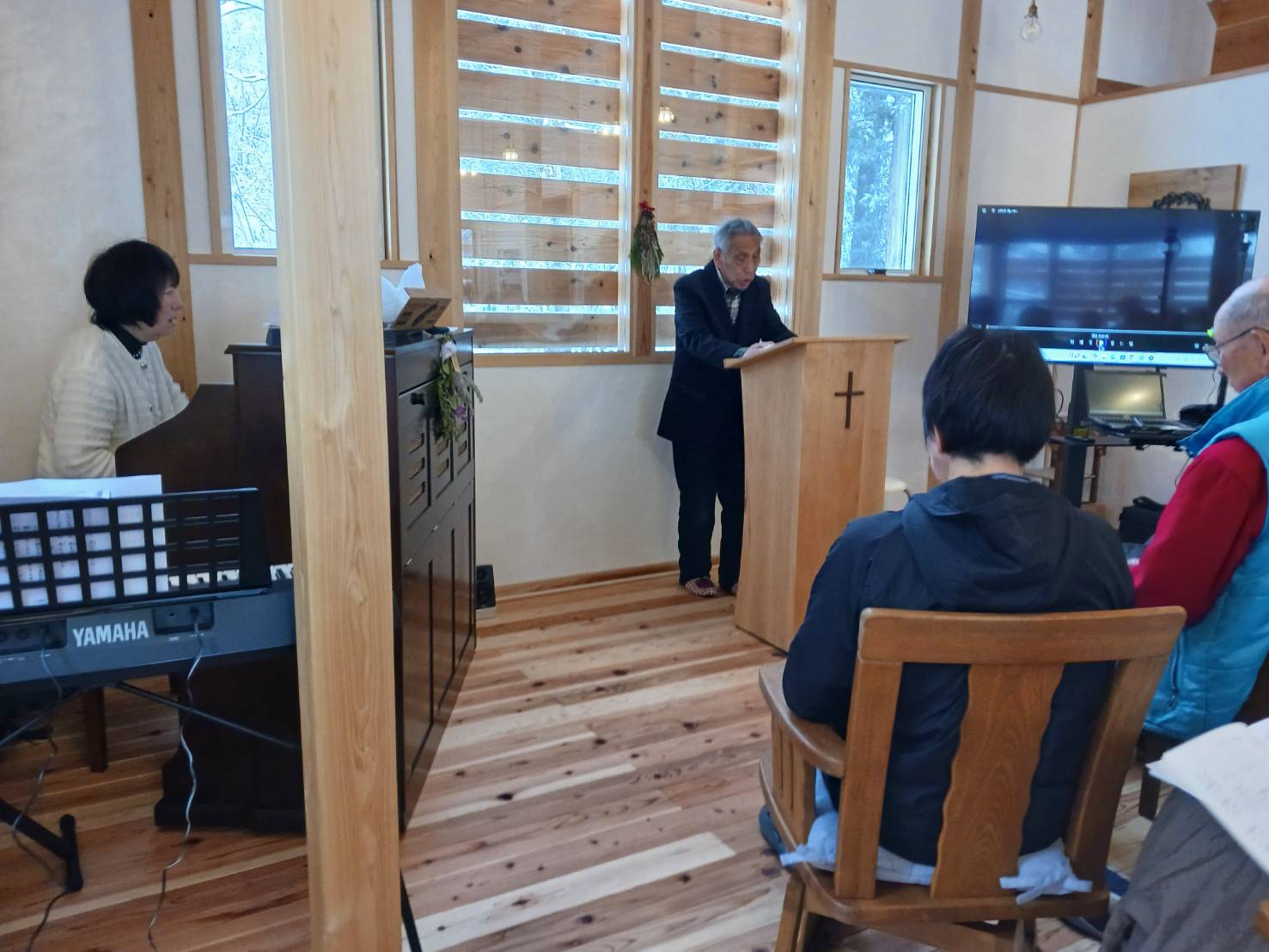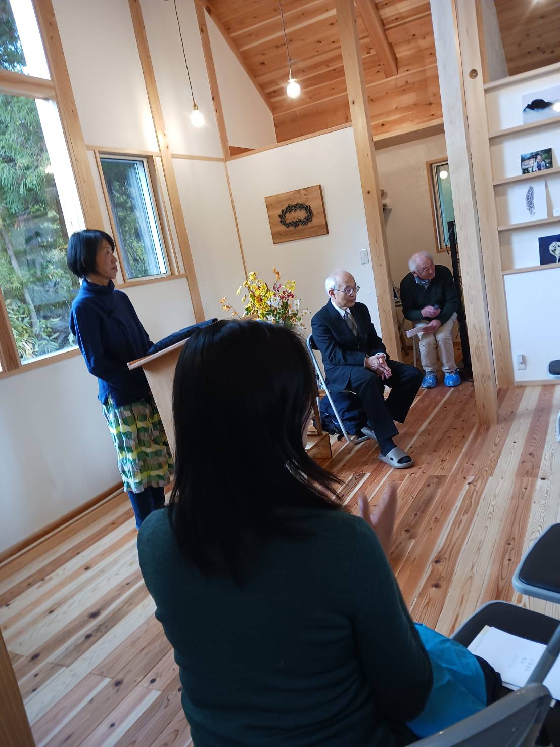 献堂式は、時折雪が舞う天候ではありましたが、新潟地区を中心に約40 名の方々が参列され、クリスチャン村のスタッフも10 人以上と満杯の中で行われました。小友先生より妙高高原教会の未来へ向けての力強い説教をいただきました。