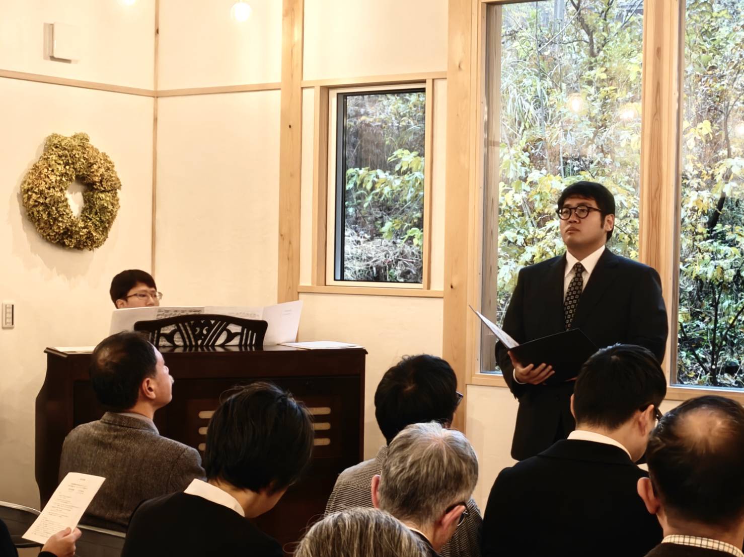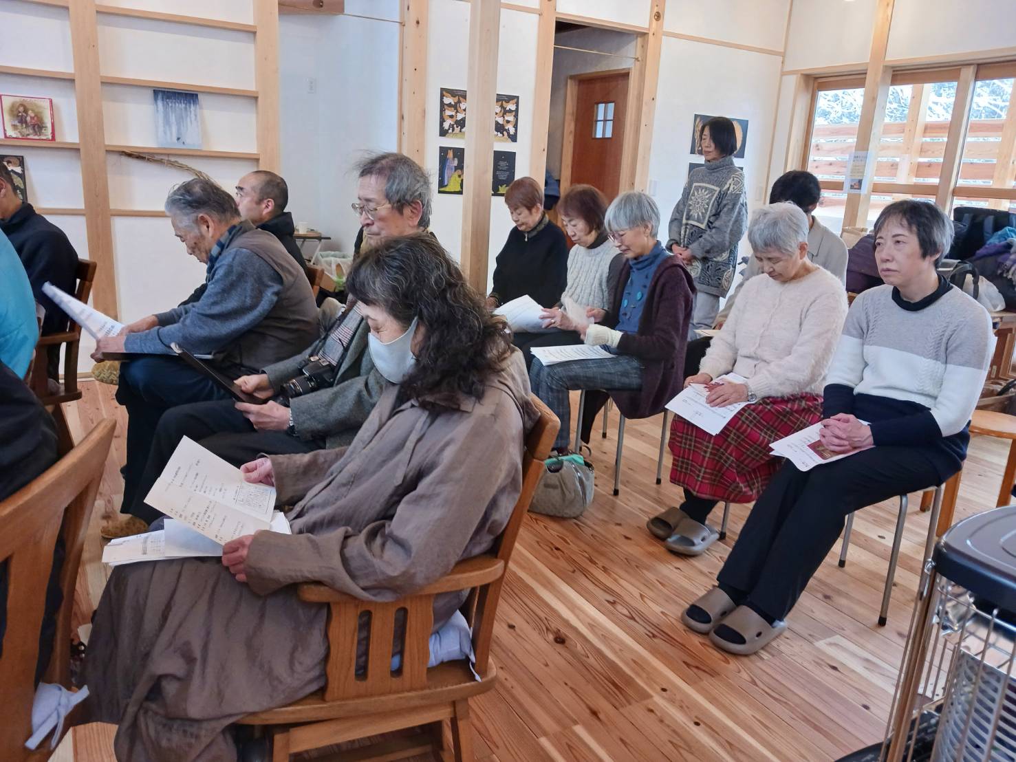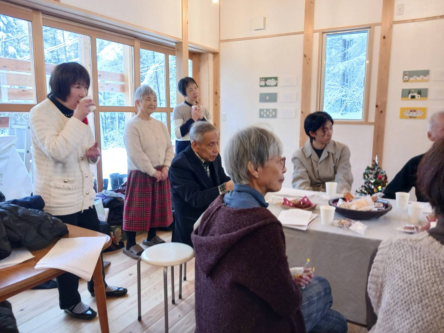 ICA 会員、妙高こうげんむら、近隣の皆さまにお集まり頂き、妙高高原教会・小友牧師のビデオ礼拝をモニターで流してクリスマス礼拝を行いました。 リードオルガンの奏楽と「妙高山麓男声合唱団」の歌声が流れる和やかで温かいクリスマス礼拝になりました。