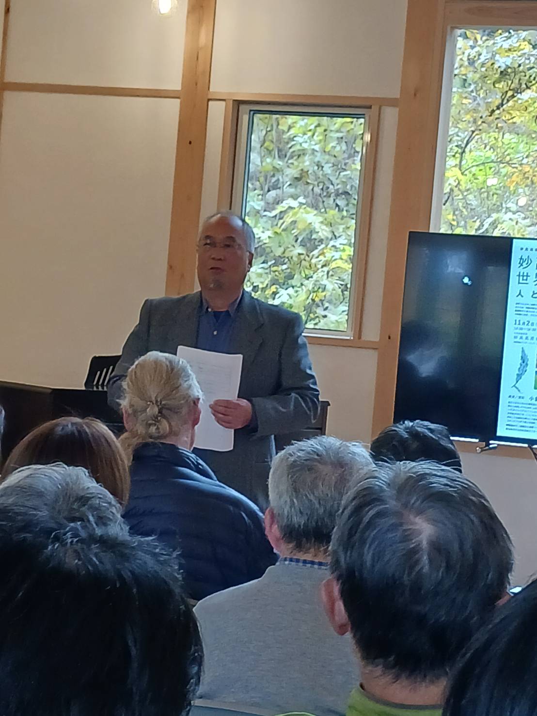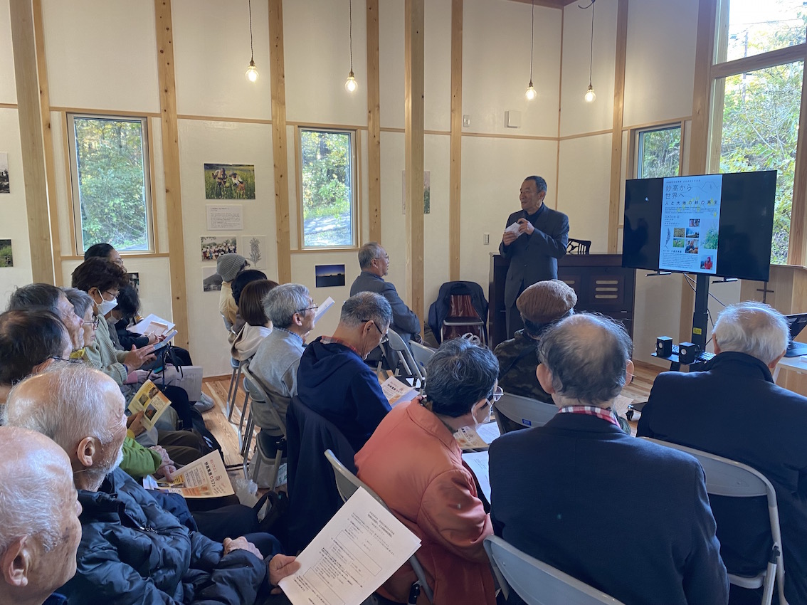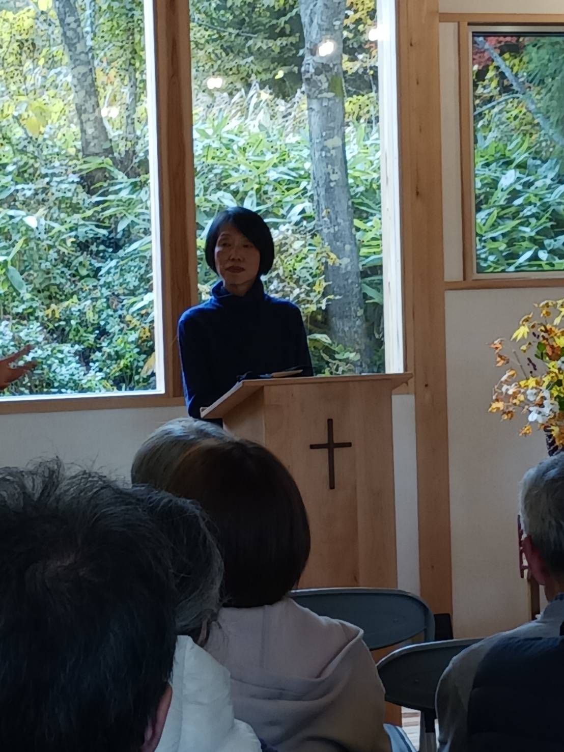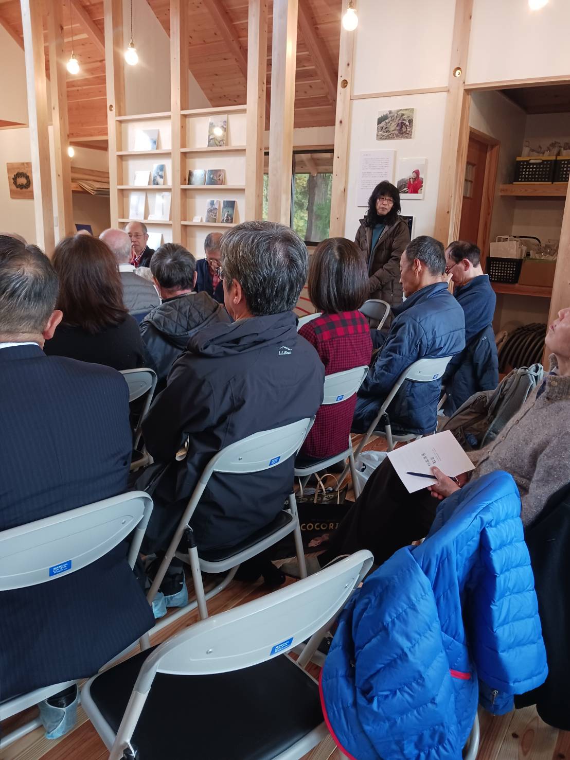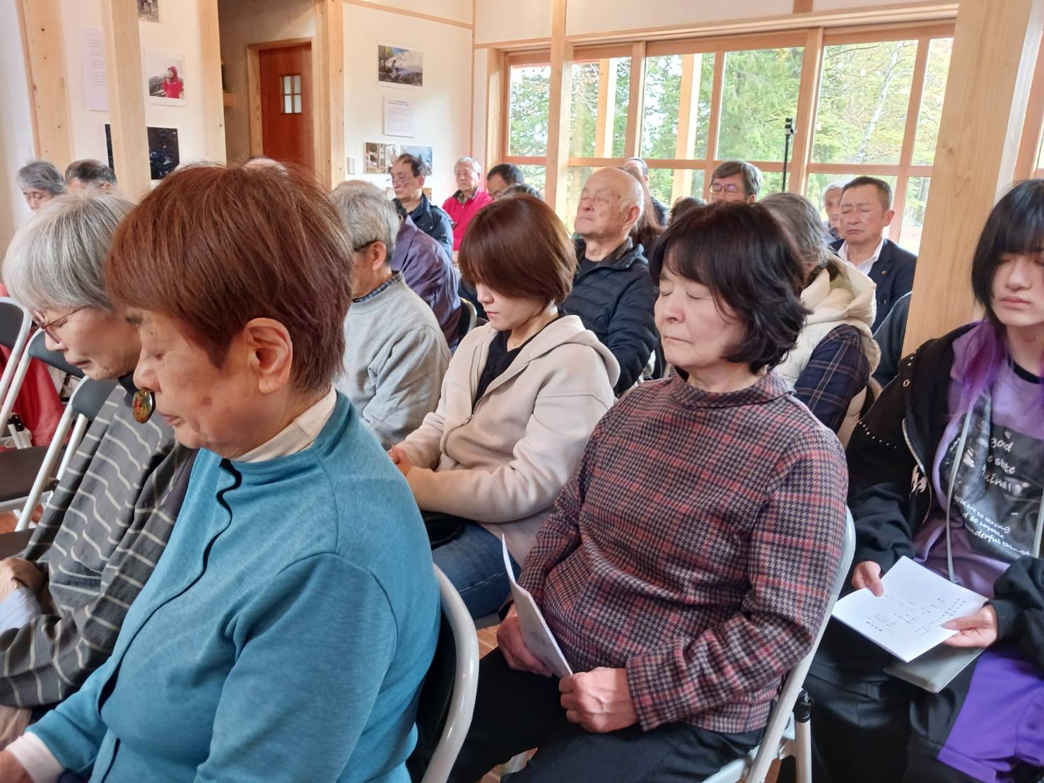 献堂式に先立ち、 日曜日に ICA 会員、NPO法人・妙高こうげんむら、近隣の皆様が集まって「献堂礼拝」を開催し、午後にはブリティッシュコロンビア大学で博士号を取得し、マサチューセッツ大学研究員として「伝統的な暮らしや農業の知恵」を研究している小倉紗央里さんによる講演会が開催されました。